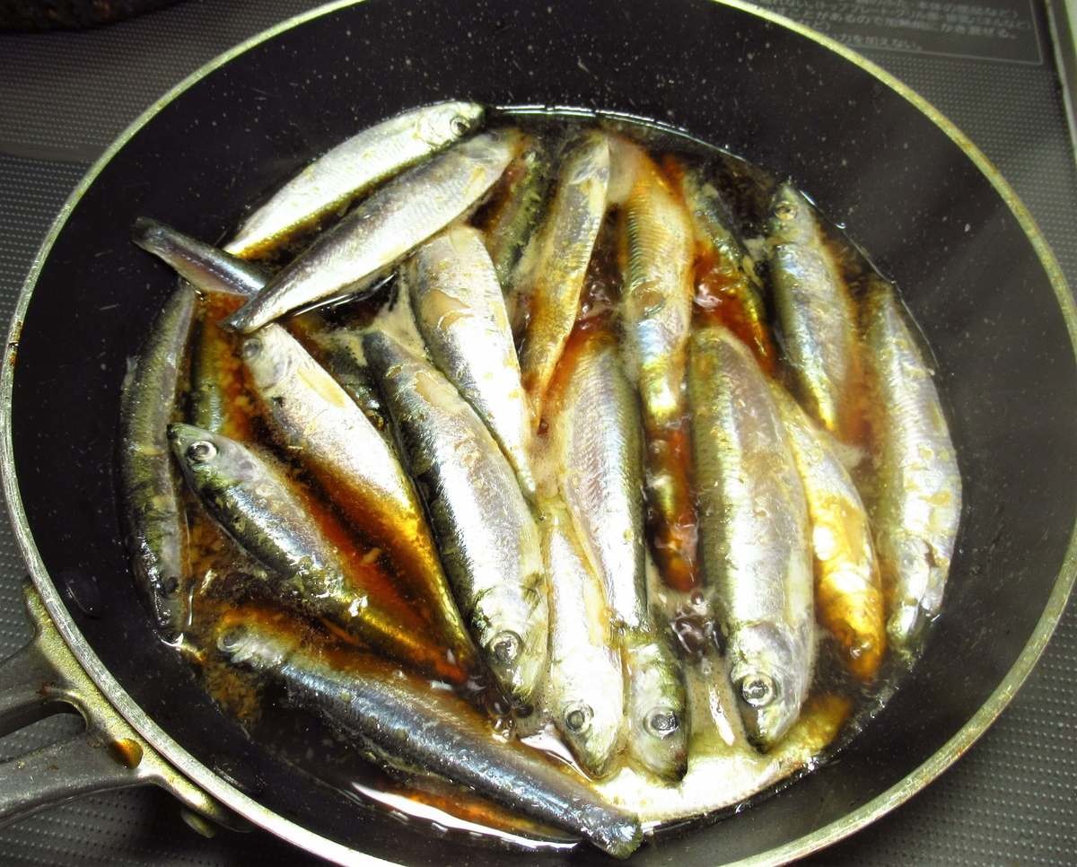 続いては「いわしの甘露煮」の作り方です。 こちらは煮詰めるので、半解凍せず冷凍のまま調理します。