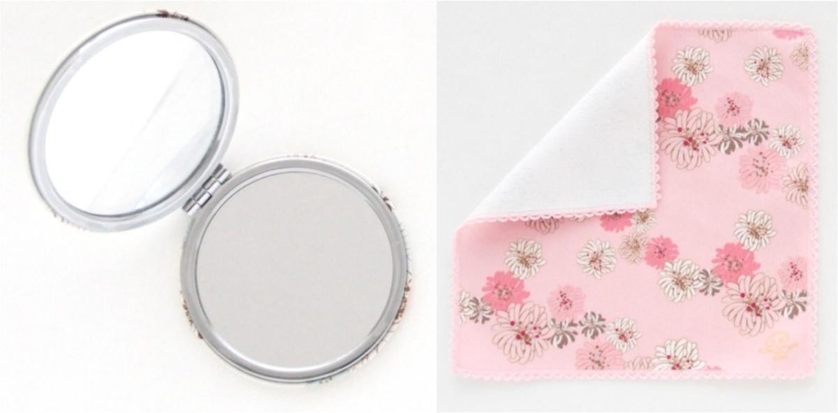 ブランドを代表するモチーフ「クリザンテーム」のギフトセット。シンプルだけど華やかさにあふれ、大人女子に人気のモチーフです。ミラーとタオルがセットになっていて、同じデザインのギフトボックス入りで、プレゼントに最適。