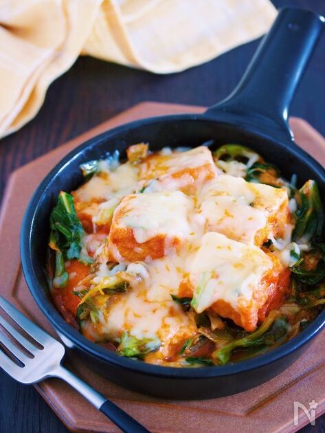 厚揚げと旬の冬キャベツをたっぷり使ったチーズダッカルビ。コクと旨みがあって食べ応え満点なので、晩酌や夕食の一品におすすめです。焼き上がったらそのまま食卓へ出し、出来立てあつあつをどうぞ。