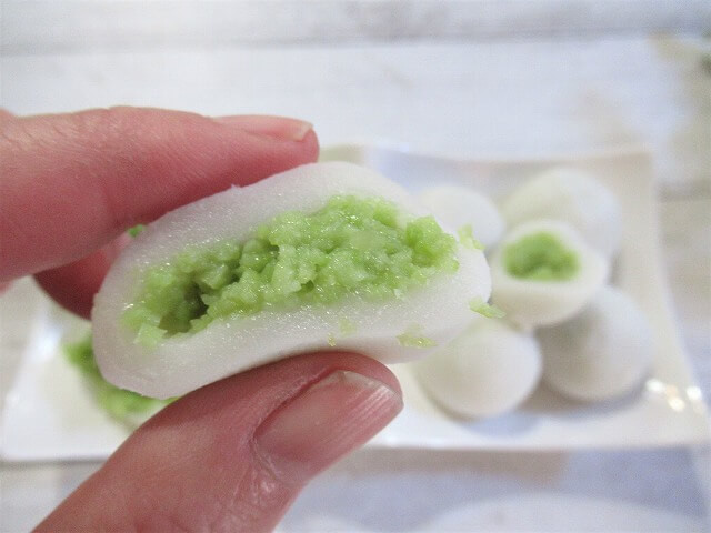 外側のお団子から中身がはみ出てくることもなく、手を汚さず食べられるところがいいですね。