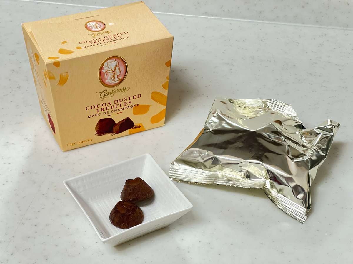 まず抑えておきたいのが、数あるカルディのチョコレートの中でも、年間を通して大人気の「ガヴァルニー プレミアムトリュフ」シリーズ。今回購入したのはマール・ド・シャンパーニュです。