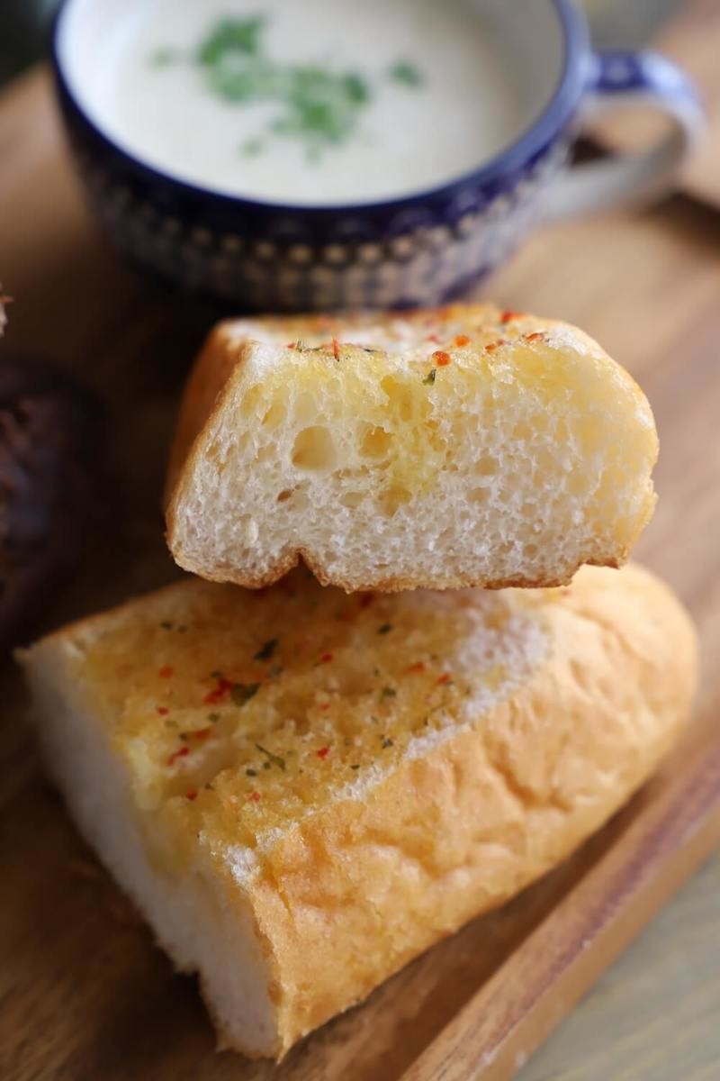 続いて、「ガーリックバターフランス」です。オーブントースターで焼くとさらにガーリックが香り、とても美味しそうです!