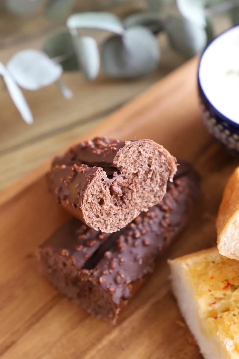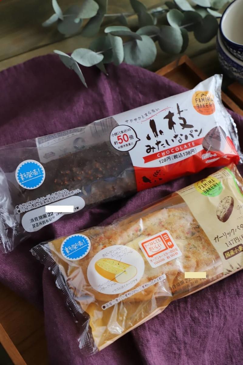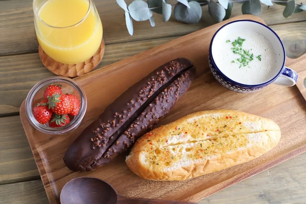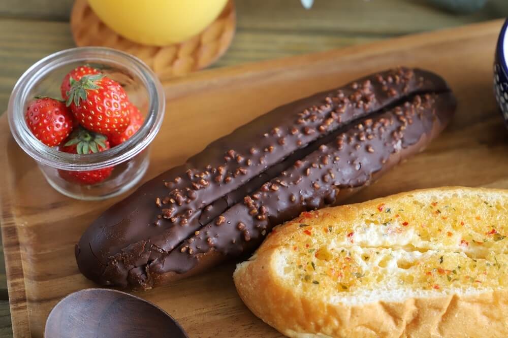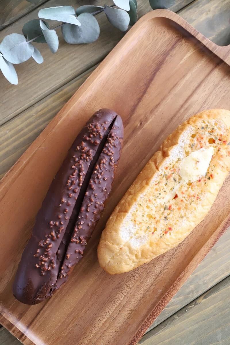 開封してみると、「小枝みたいなパン」からは美味しそうなチョコレートの香りが、そして「ガーリックバターフランス」からはガーリックのとても良い香りがします!