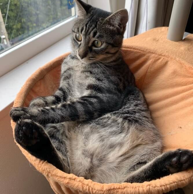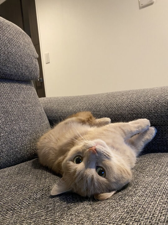 飼い主はやすださん。グレージュでふわふわなぽいちゃん。寝転びながらの上目遣いにきゅんときます!