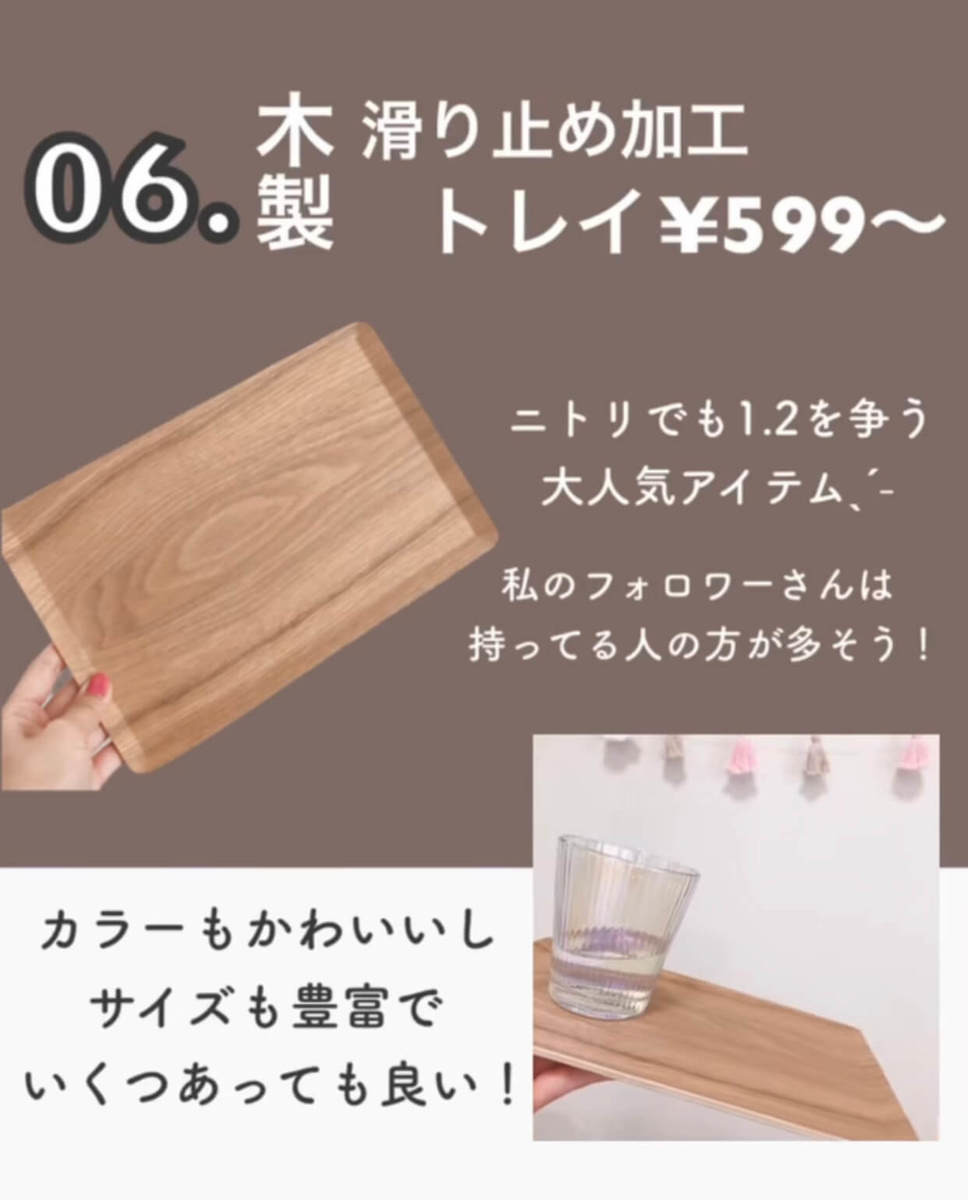 ニトリの木製グッズといえば、このトレーは外せないですよね。我が家も2サイズ持っています♪