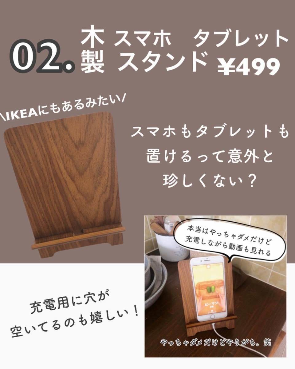 ②ワンコインで買える木製スマホ・タブレットスタンド