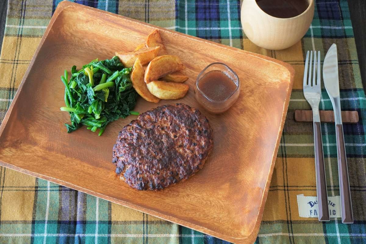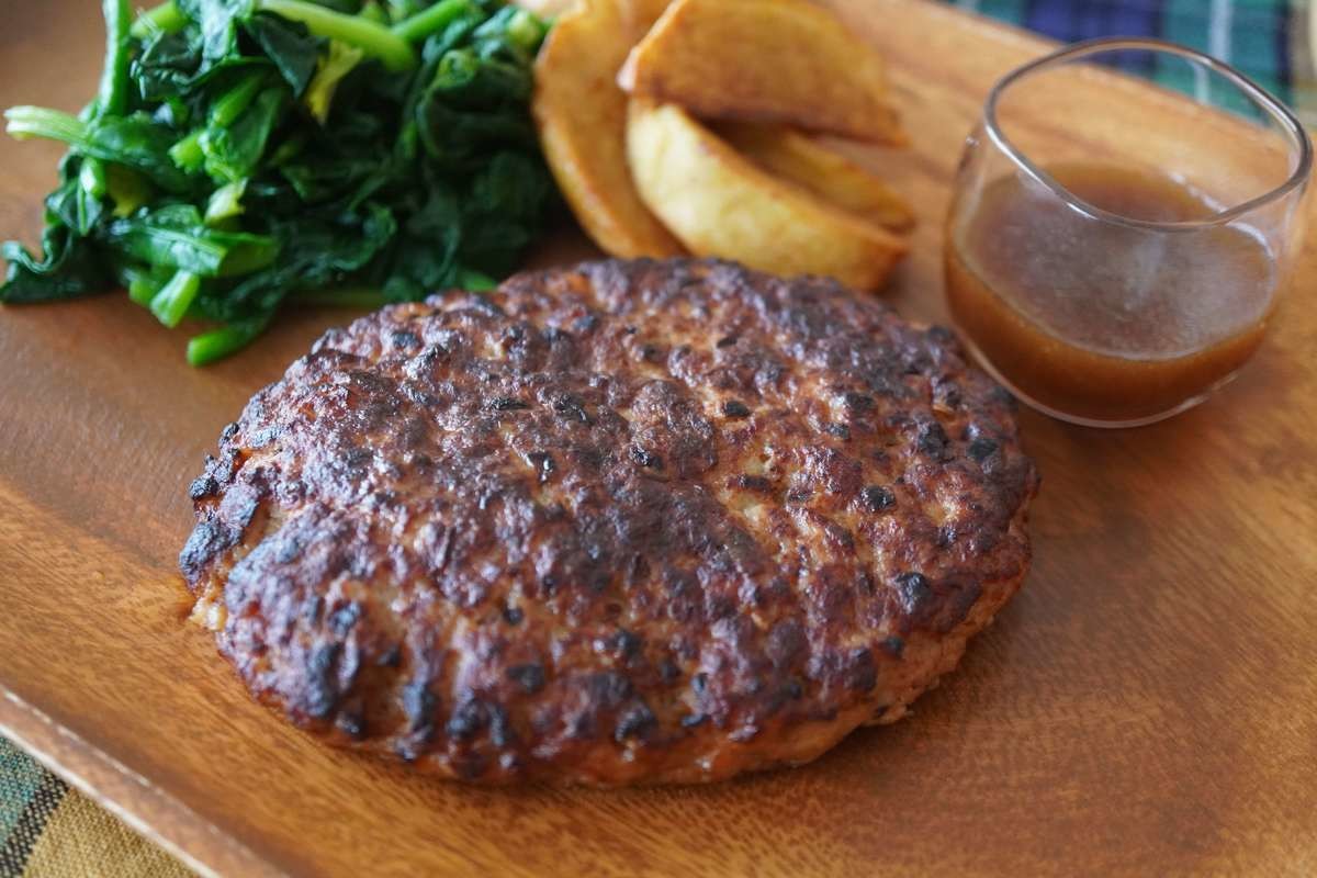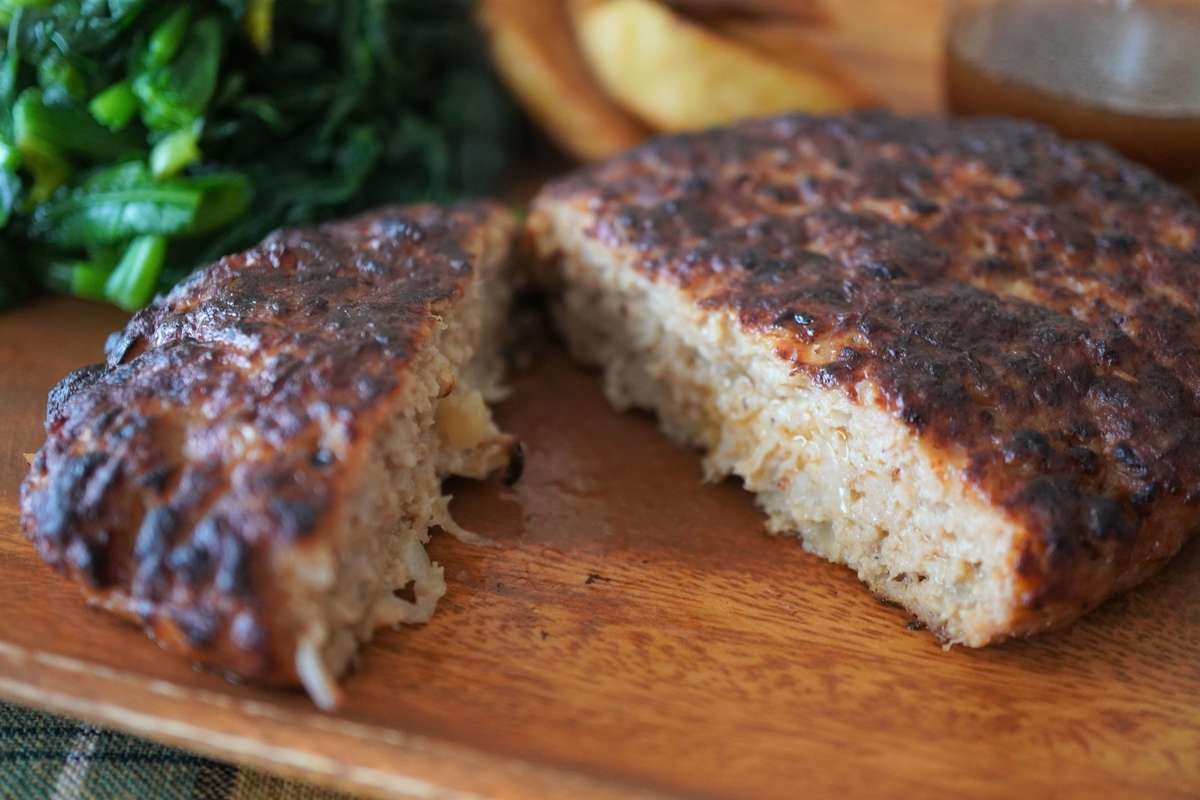 こちらのハンバーグは鶏肉、豚肉の合挽きミンチが使われています。