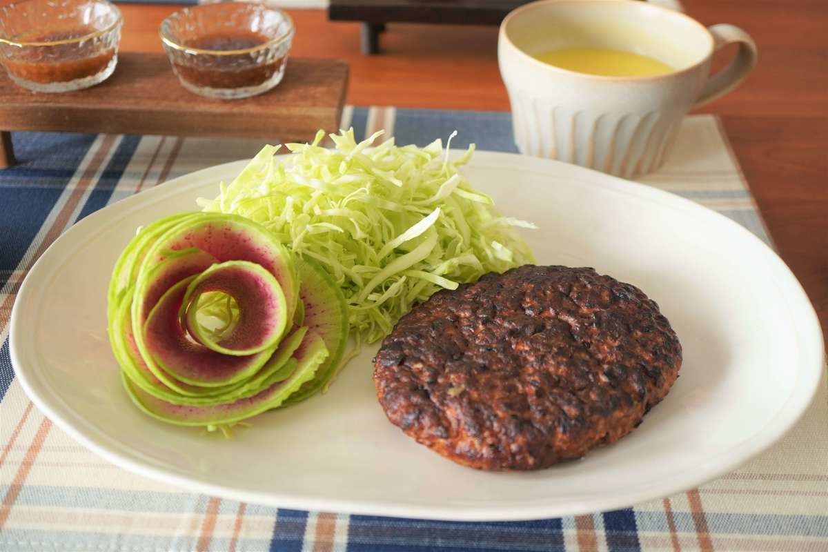 牛肉が入っていないので「お肉屋さんのハンバーグ」と比べると味がさっぱりしています。