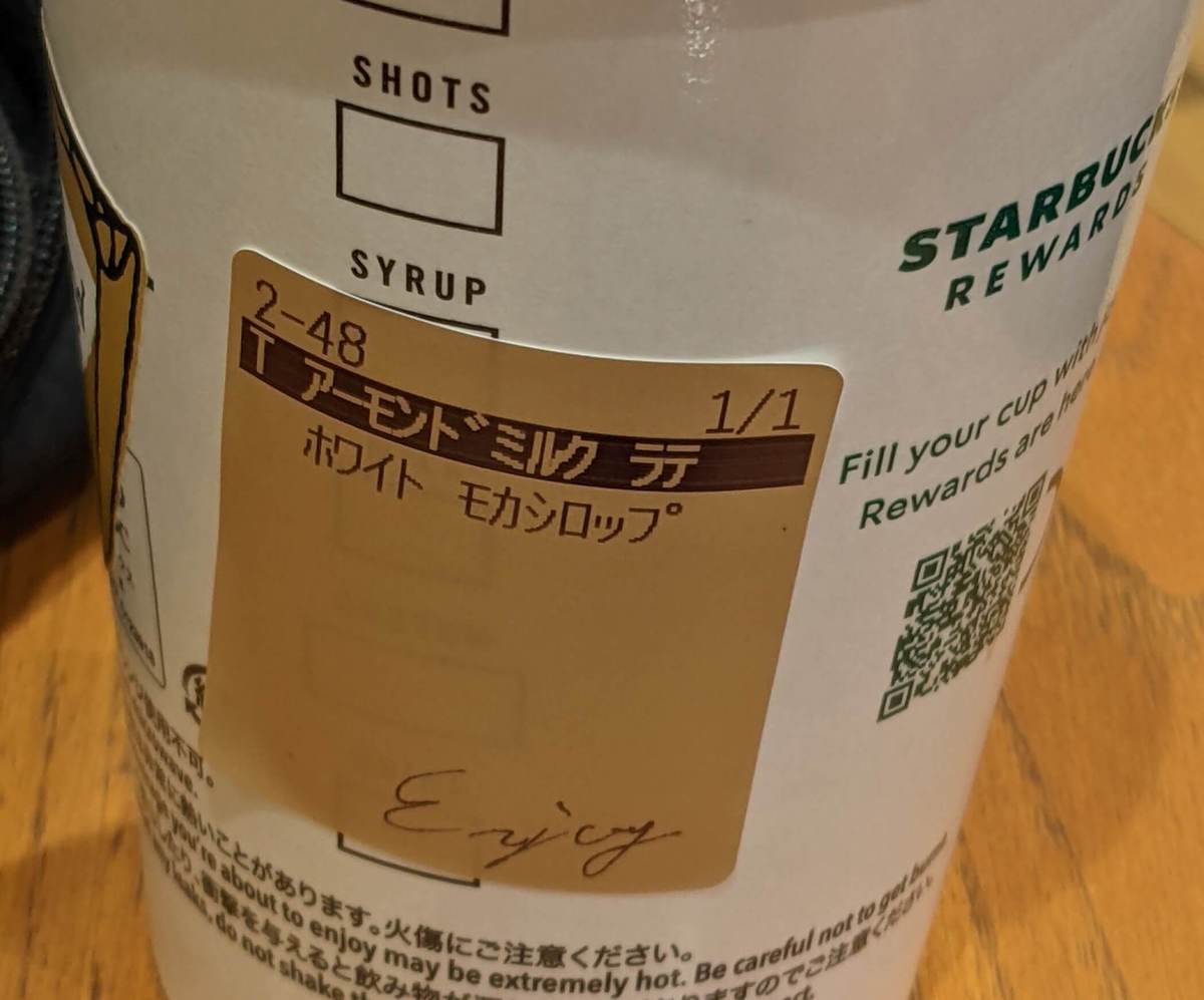 なお、アーモンドミルク ラテを注文する場合、ホワイトモカシロップやソースはモバイルオーダー&ペイで増量カスタマイズはできません。レジにて注文しましょう!