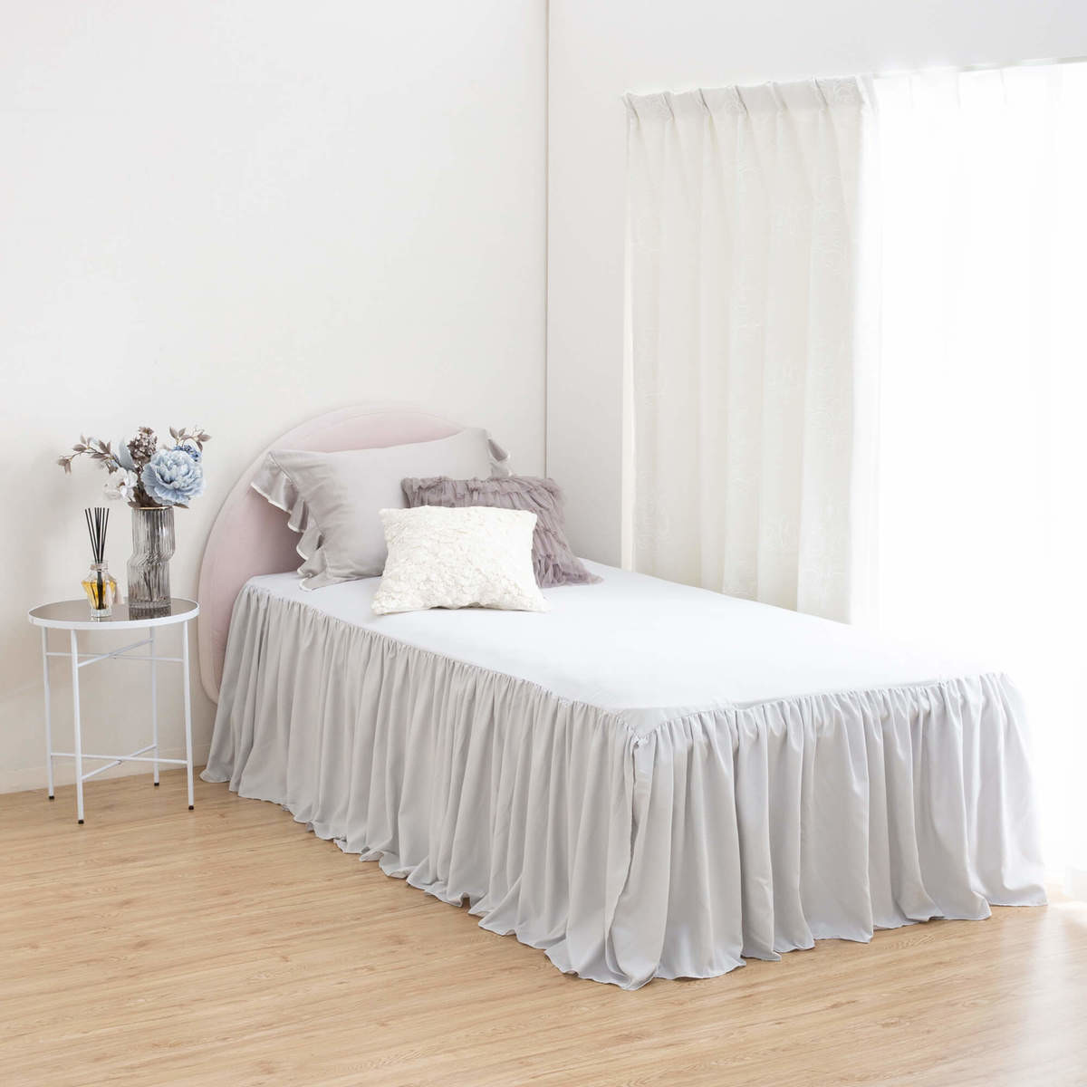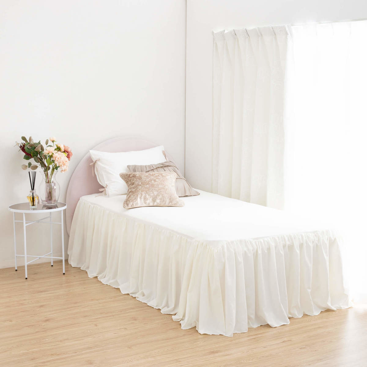 ベッド下をおしゃれに目隠しできるフリル付きシーツです。シーツの3辺に施した、たっぷり長めのフリルでベッド下の収納スペースをエレガントにカバーします。