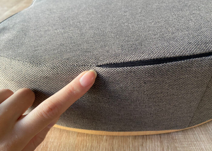 あと、地味にうれしいポイントが、クッションのファスナーが外側ではなく、内側に内蔵されていること。
