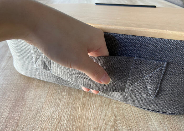クッションの中材にビーズなどの柔らかい素材が入っているものは、テーブルの角度を自由に変えることができます。 一方、膝の上に置いたときには安定感がないので、作業し辛いと感じることも…。