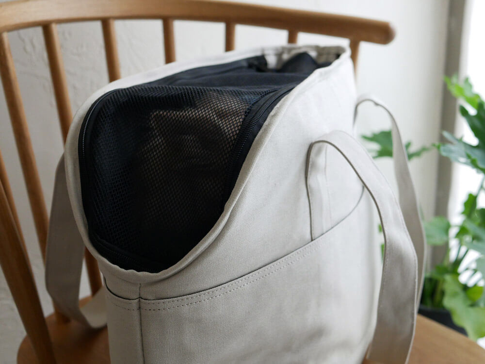 上部の開口部はメッシュ素材のカバー付きで通気性も良く安心。 電車やバスなどの公共交通機関を利用する時や、愛猫の通院や定期健診にも便利です。