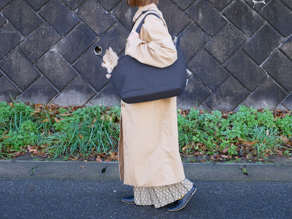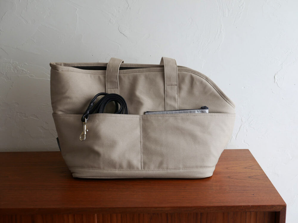 キャリートートバッグはどんなファッションや気分にも合うシンプルさが推し。利き手を気にせず使える両サイドポケットにバッグの中材にはクッション性があるのでペットも心地良く過ごしてくれそうです。