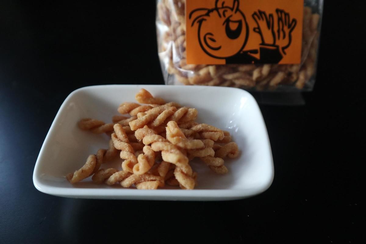 くるくるとねじられたパスタが揚げてあります。