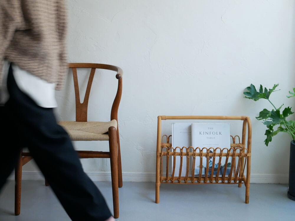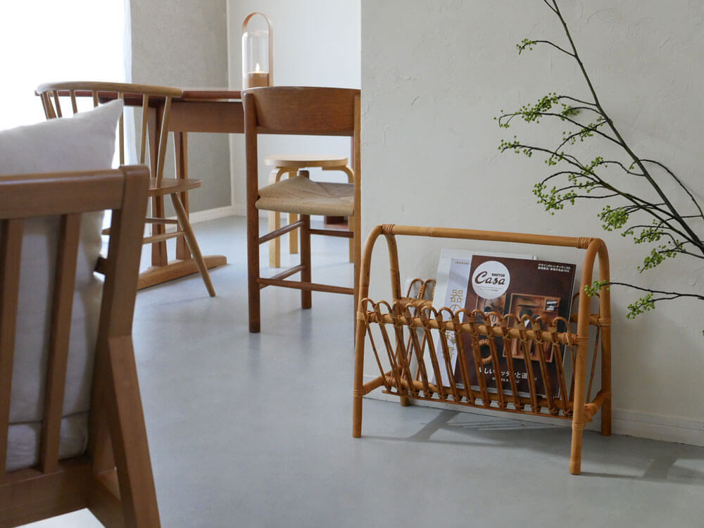 ラタンの質感に少しの懐かしさがプラスされ、ドラマチックな景色に。ぜひお気に入りの雑誌・本をインテリアの一部に変えてみてくださいね。