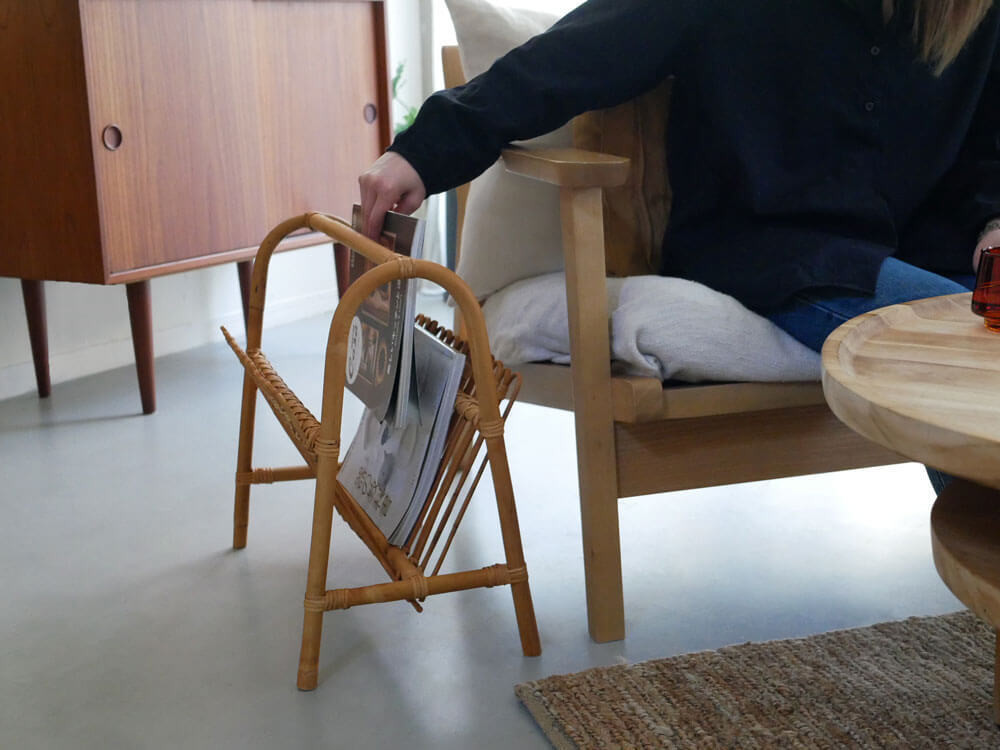 熟練の職人さんにより、太目のラタンを丁寧に編まれて作られた「マガジンラック」。