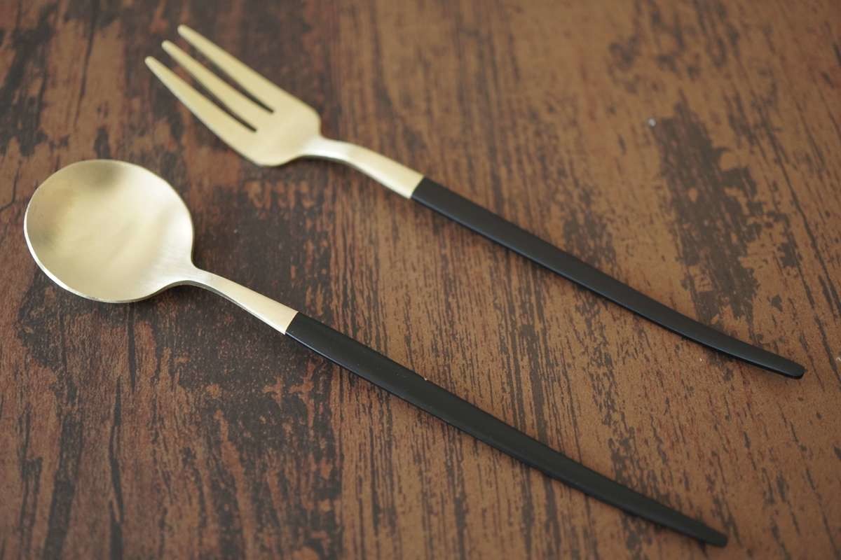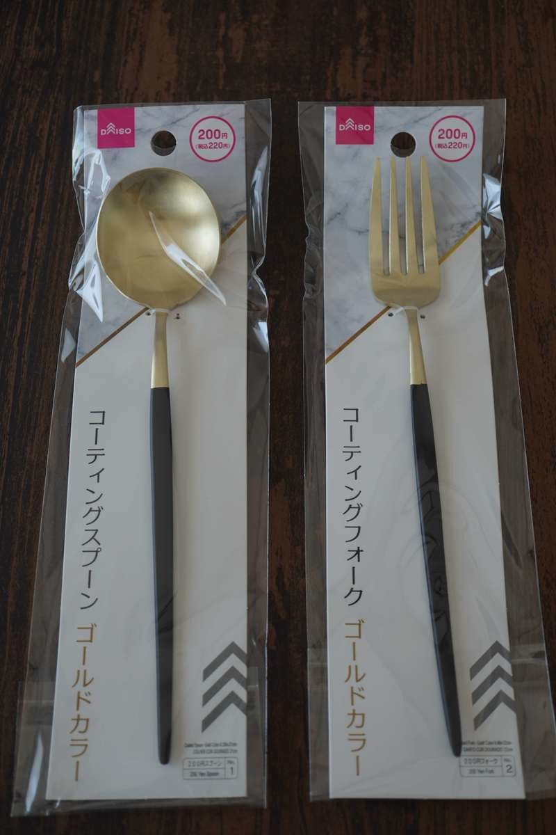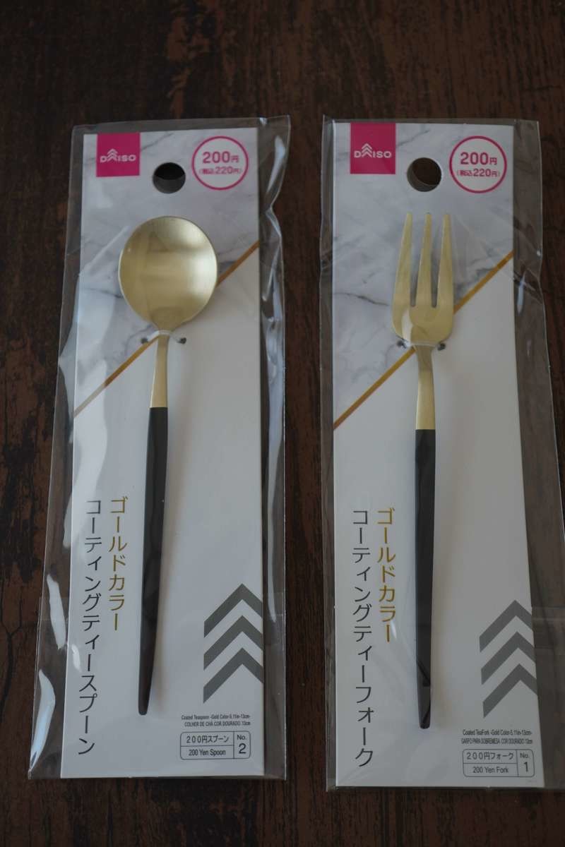 コーティングスプーン&フォークもティースプーン&フォークも200円とは思えないほどの高見えカトラリーです。