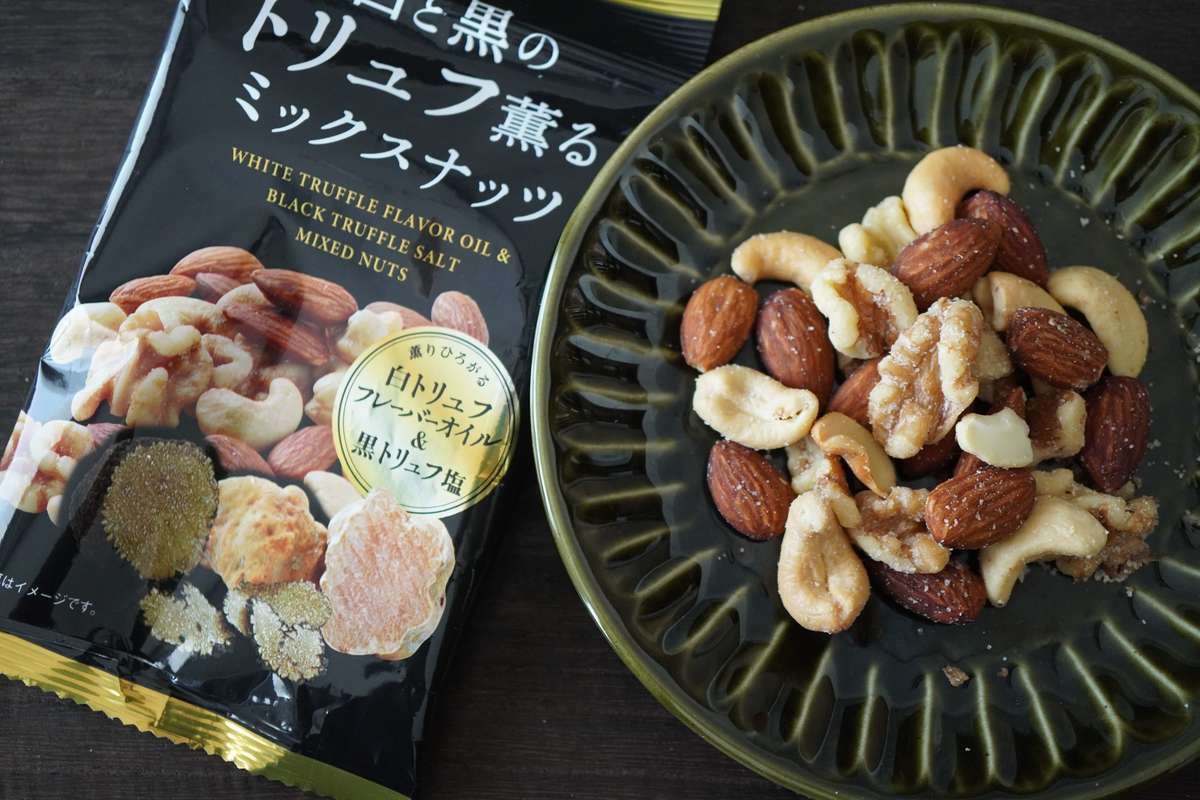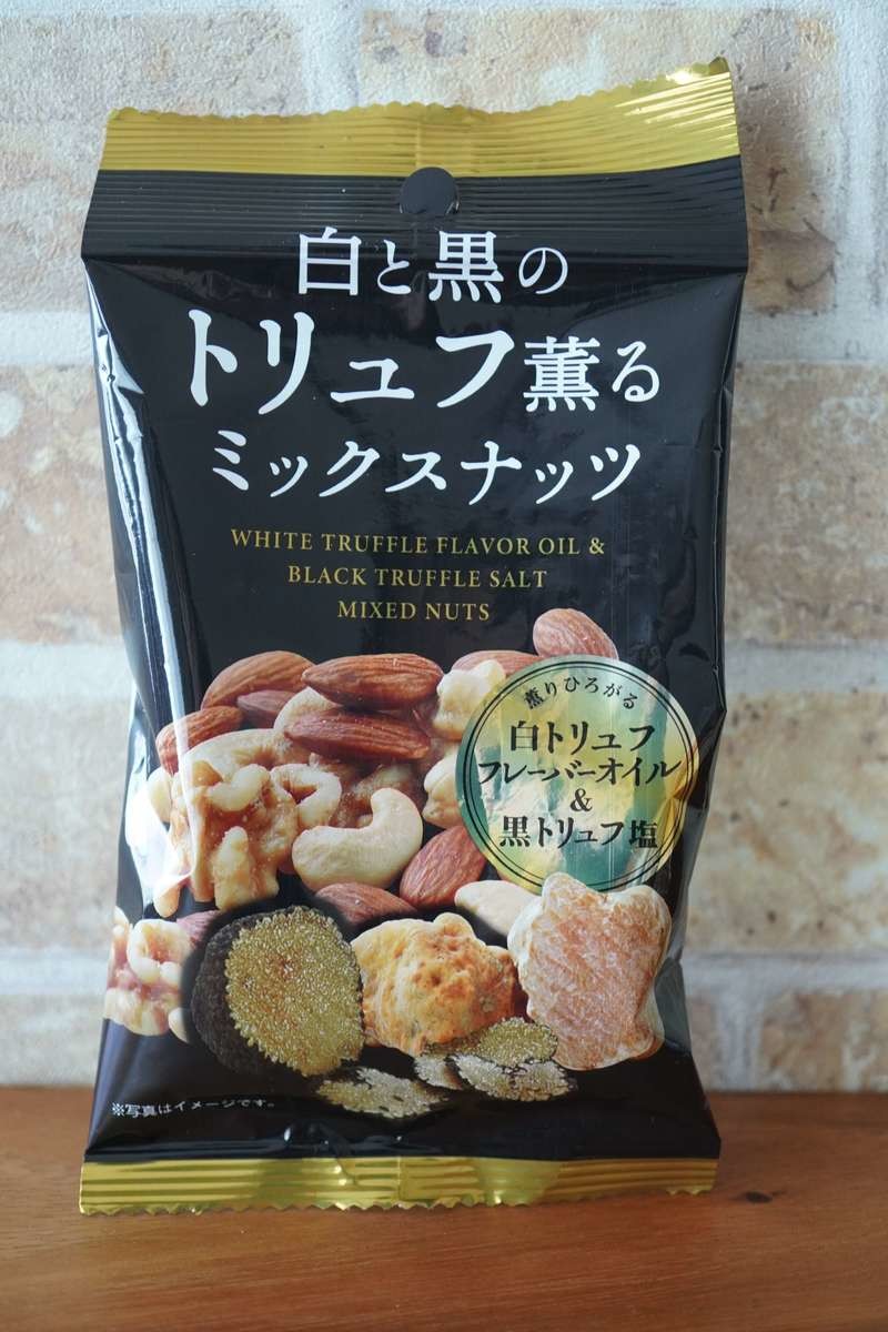 2021年3月に販売されたこちらの商品は白トリュフのフレーバーオイルと黒トリュフ塩が使われているミックスナッツです。