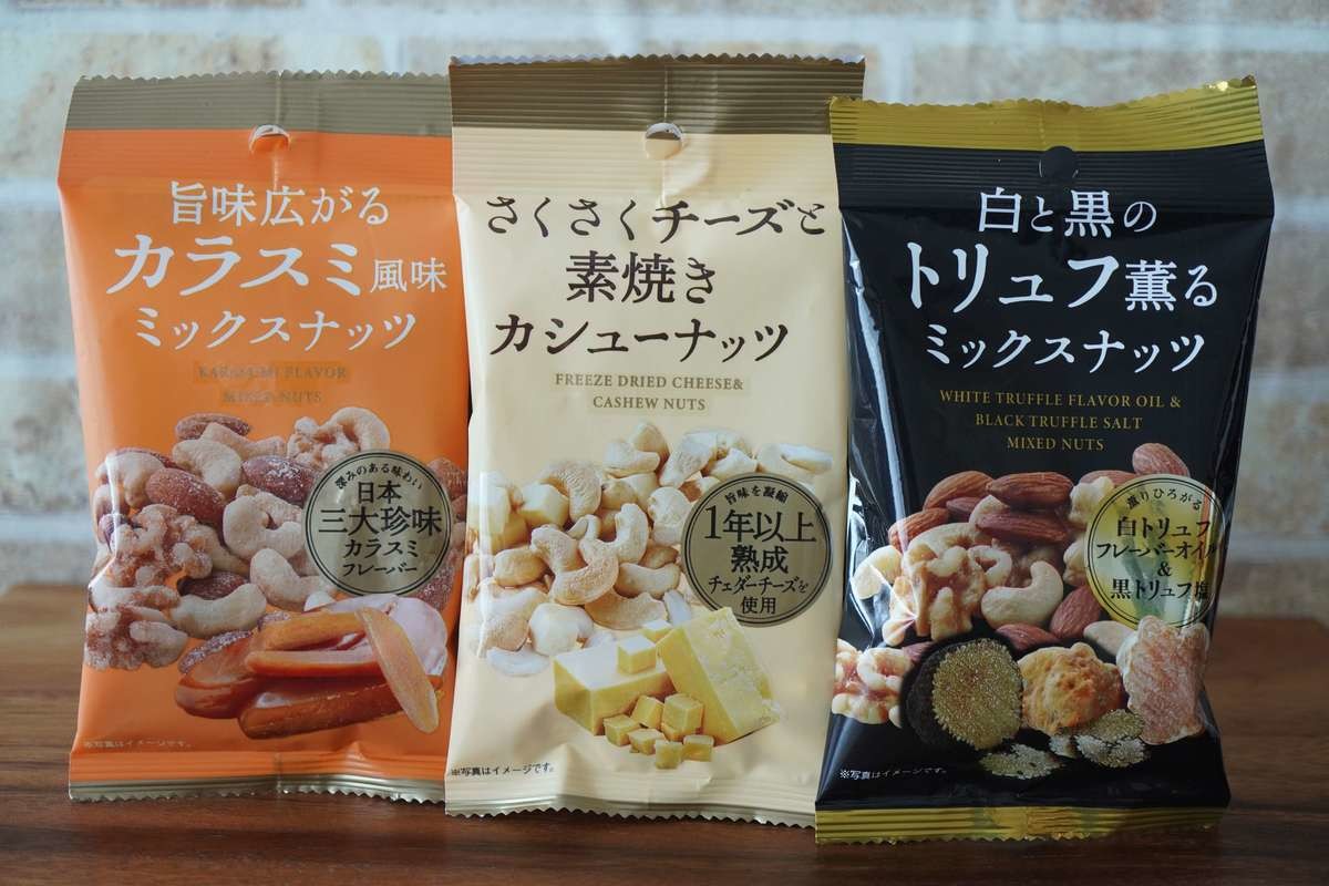 高級食材のトリュフやカラスミなどの味付けがされたミックスナッツは通常のものとは大きく味が異なります。