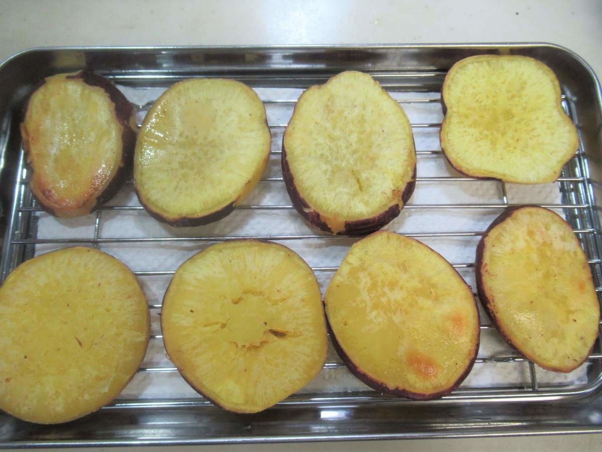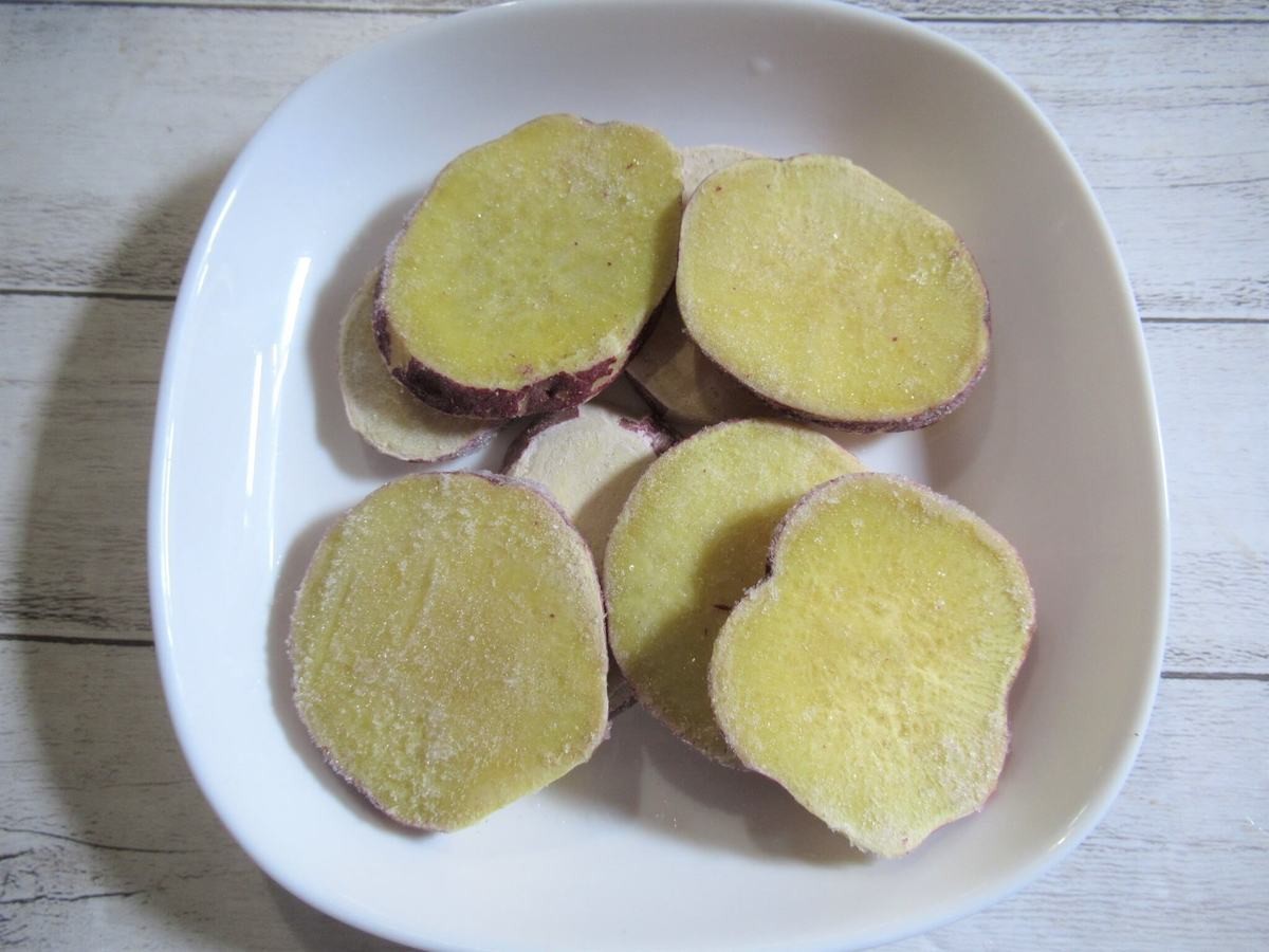材料で、さつまいもの分量は180gとなっていますが、今回実際にグラムを計ると約8枚ほどでした。 ただ、個体差がありますので目安として参考にしてくださいね。