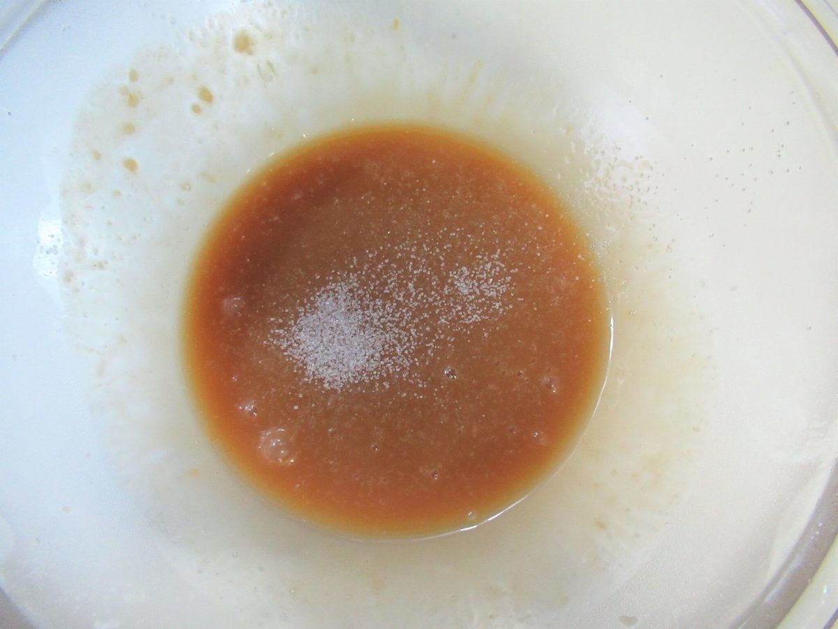 キャラメルが全部溶けて牛乳と馴染んだら、塩を少々入れて混ぜソースの完成です。