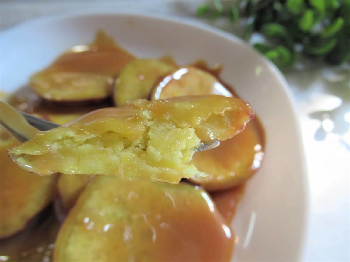 ただ、あくまで個人の感想ですが「天ぷら用さつまいも」は、半分くらいにカットしてからキャラメルソースに絡めたほうがもっと食べやすいかもしれません。