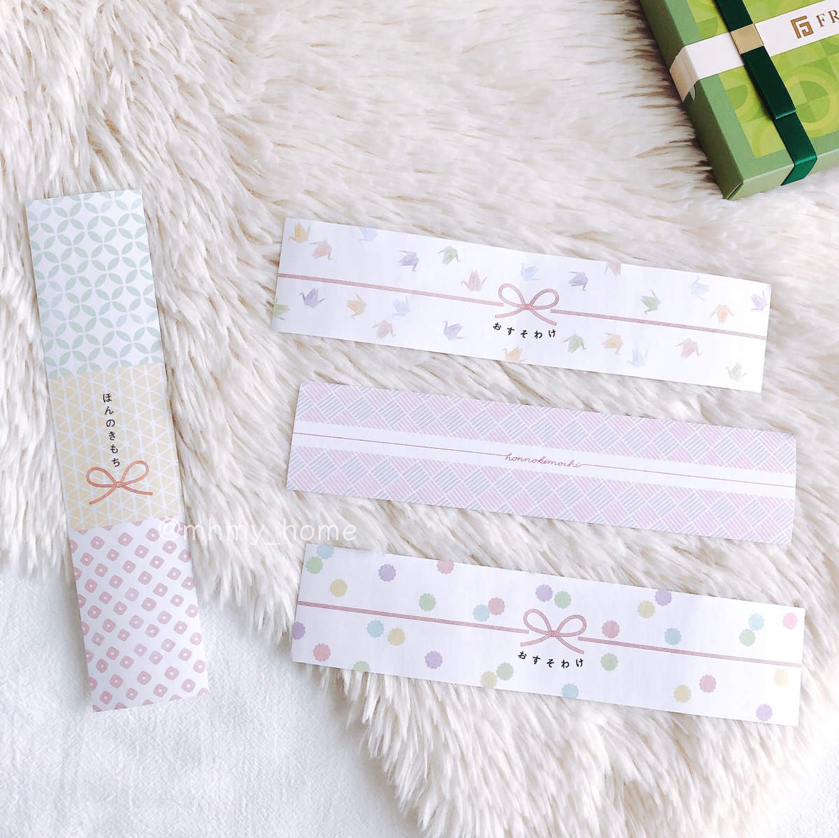 プチギフトになる、帯タイプのシールも見つけました!横タイプ3柄、縦タイプ1柄でお得な4柄入りです。