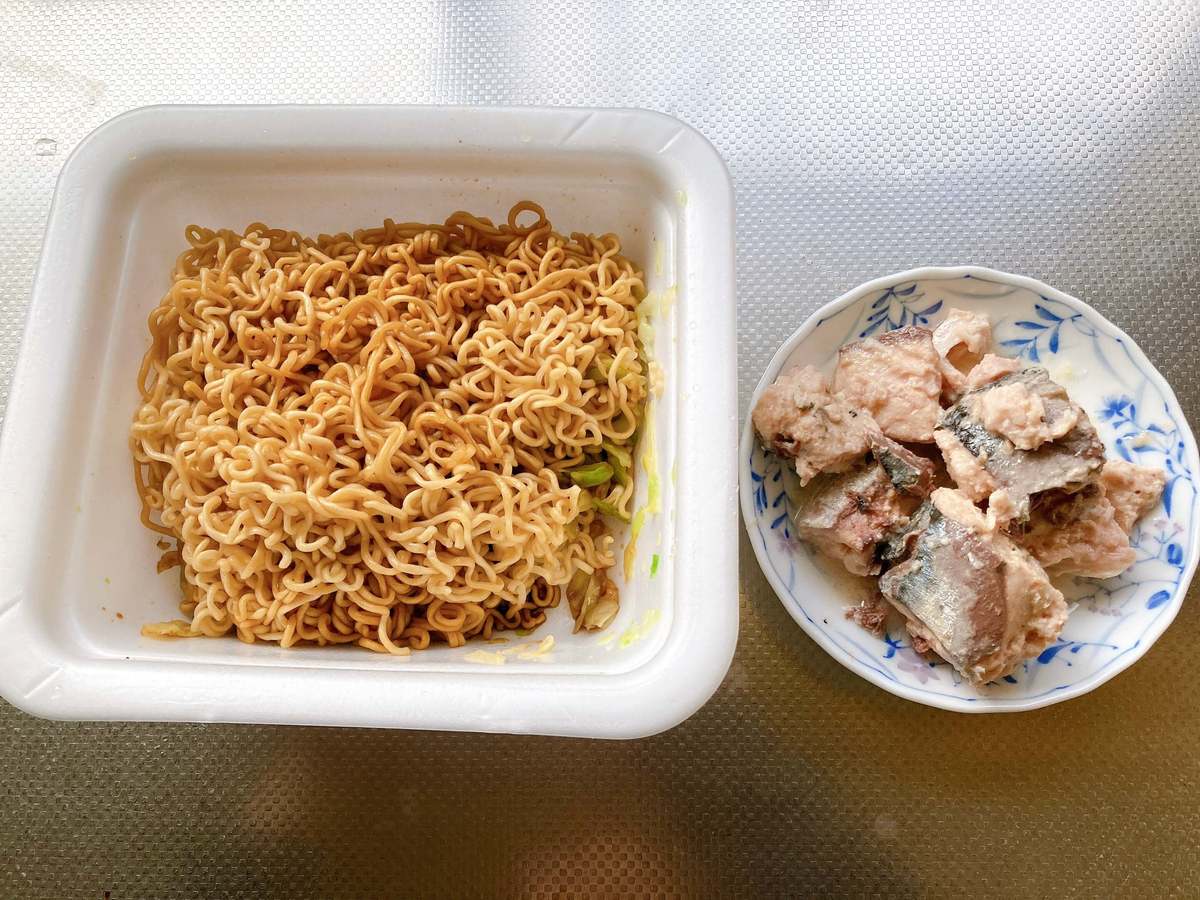 サバの色味のせいなのか、見た目はあまり食欲をそそられませんが、一平ちゃん×サバ缶を食べてみた結果、意外にもおいしかったです!