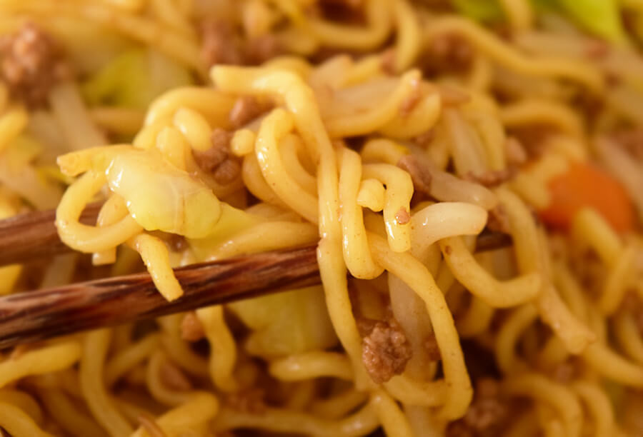 中身は生麺と粉末ソースが入っています。有名メーカー品の焼きそばとの違いはよくわかりません。