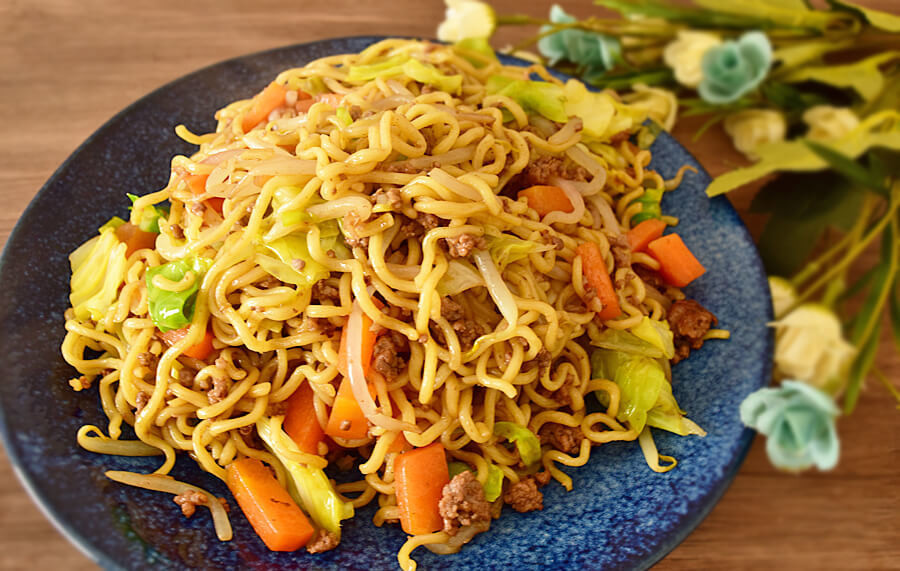 自宅にあった野菜と組み合わせて、焼きそばを作りました。