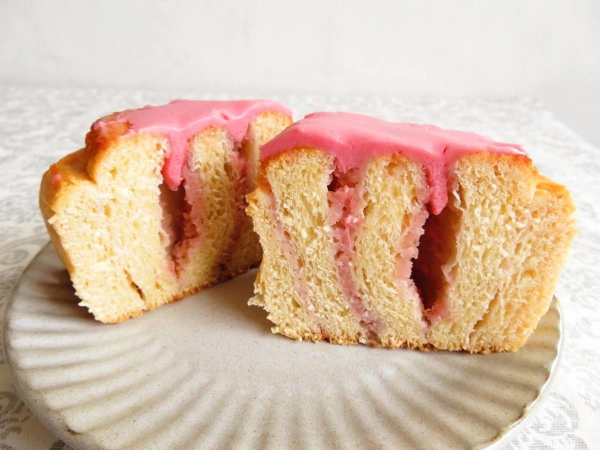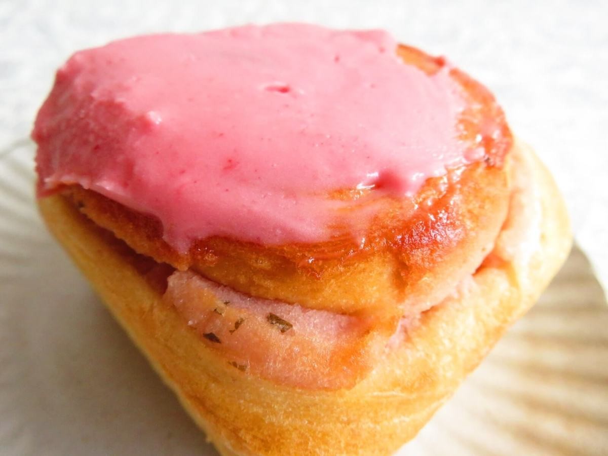 ピンク色のフロスティングがひときわ目を引きますよね。たっぷりかかっていて、大満足! 通常のシナモンロールに桜風味のフロスティングがされているのかな?と思いきや、こちらは色がつけられただけ。