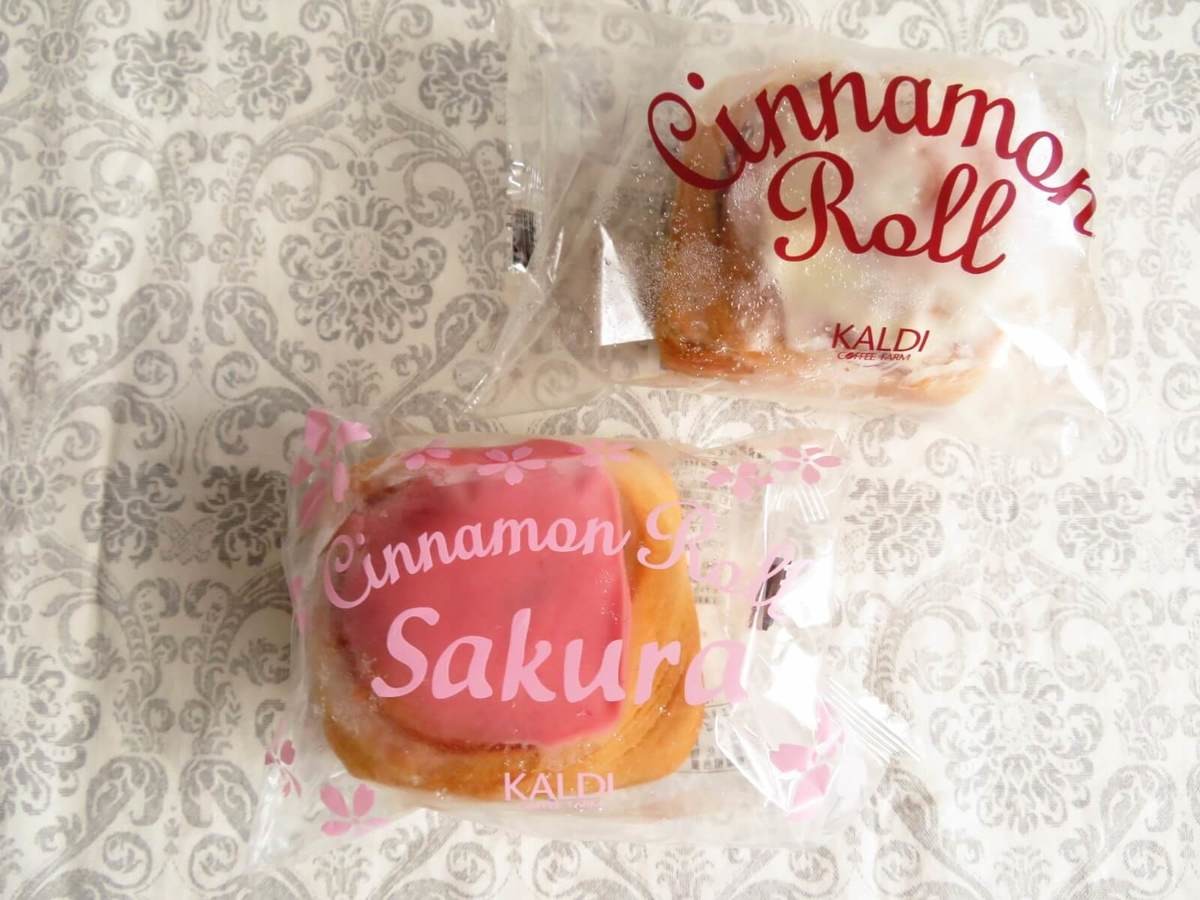 こちらはカルディのロングセラー商品「シナモンロール」のさくら味。冷凍コーナーに置かれています。