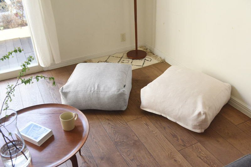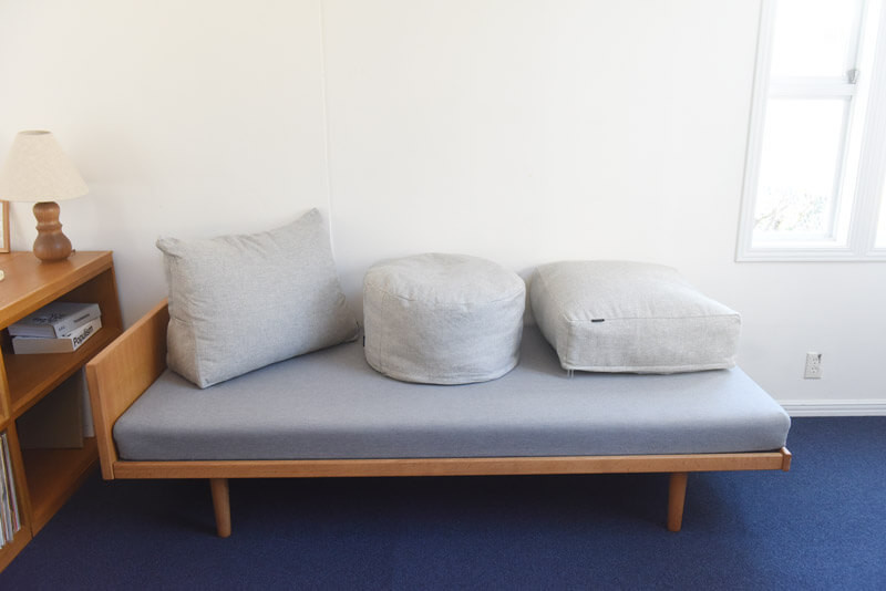 フカッと座ったり、背もたれにしたり、2つ並べてベッドのように使うこともできますよ。