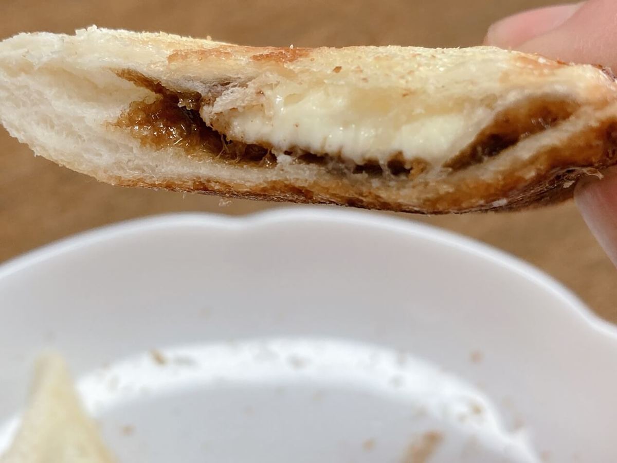 甘さと苦味の相乗効果でより美味しく、甘い系のホットサンドが苦手な人でも取っつきやすい印象です。