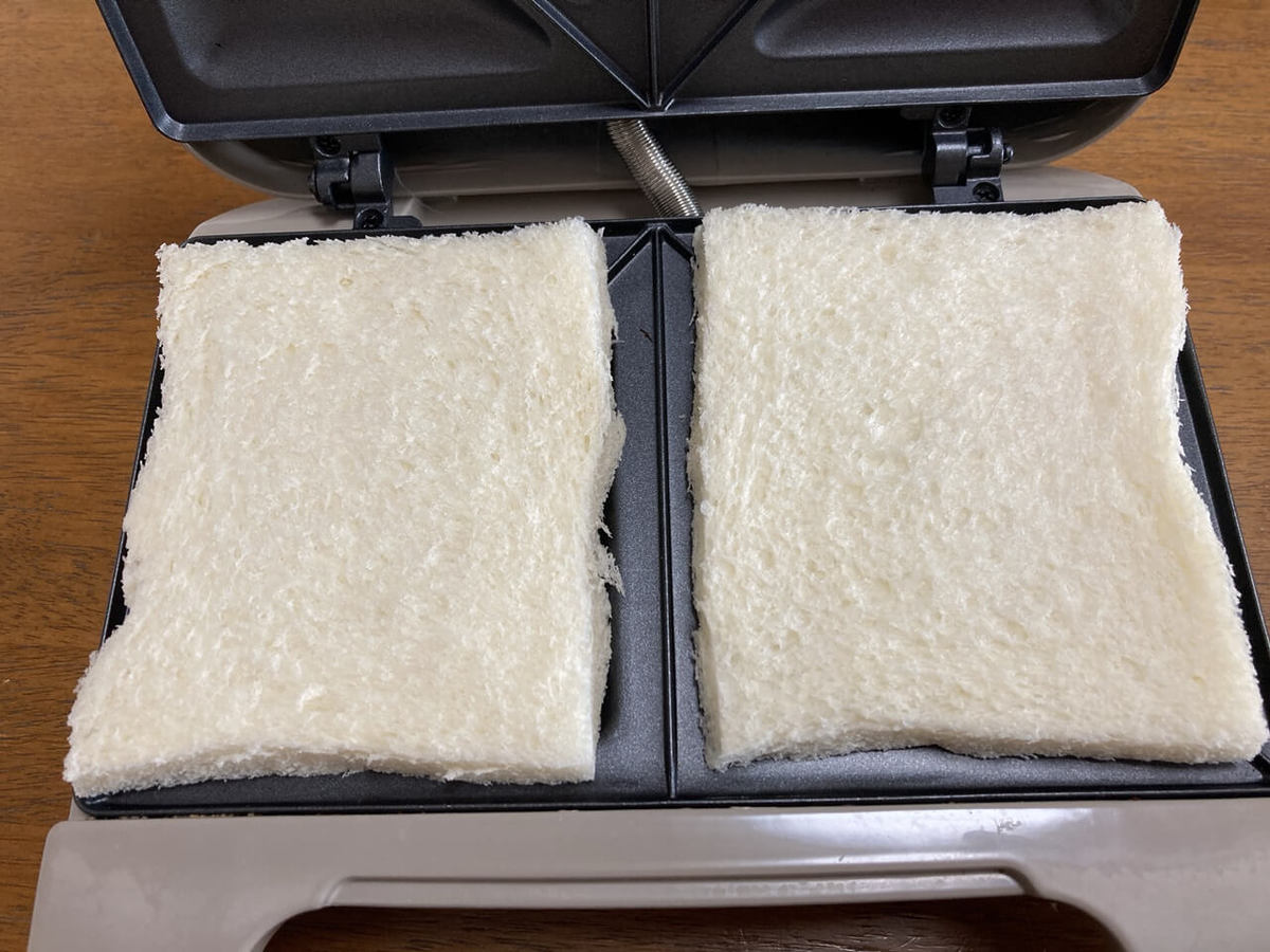 わが家のホットサンドメーカーは耳を残したままでは挟めないため、事前に耳部分はカットしています。