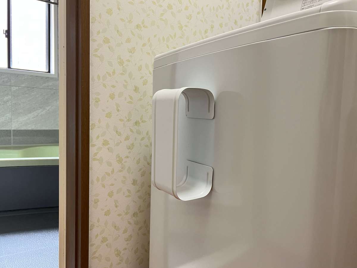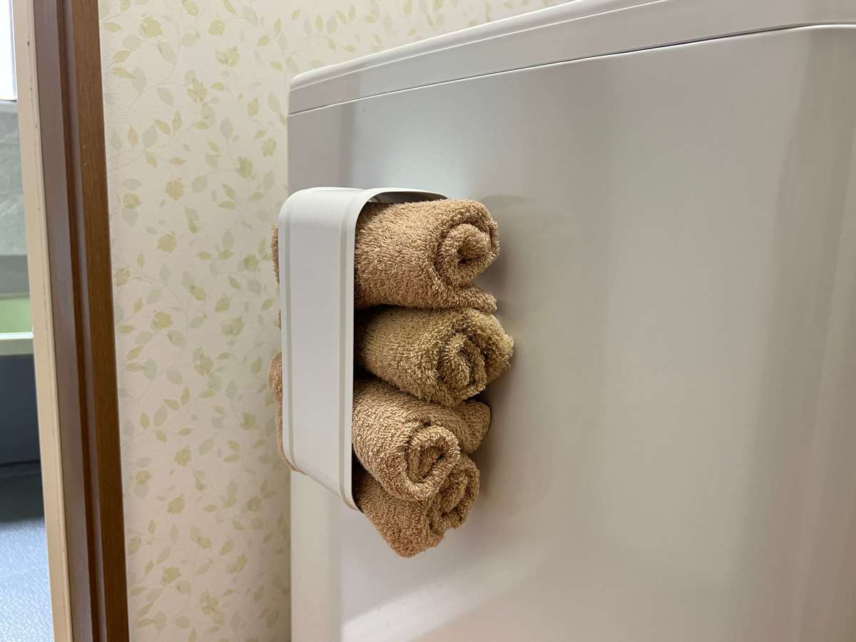 収納を作りたい場所(洗濯機の側面など)に本体を取り付けるだけで、タオル収納の完成です。