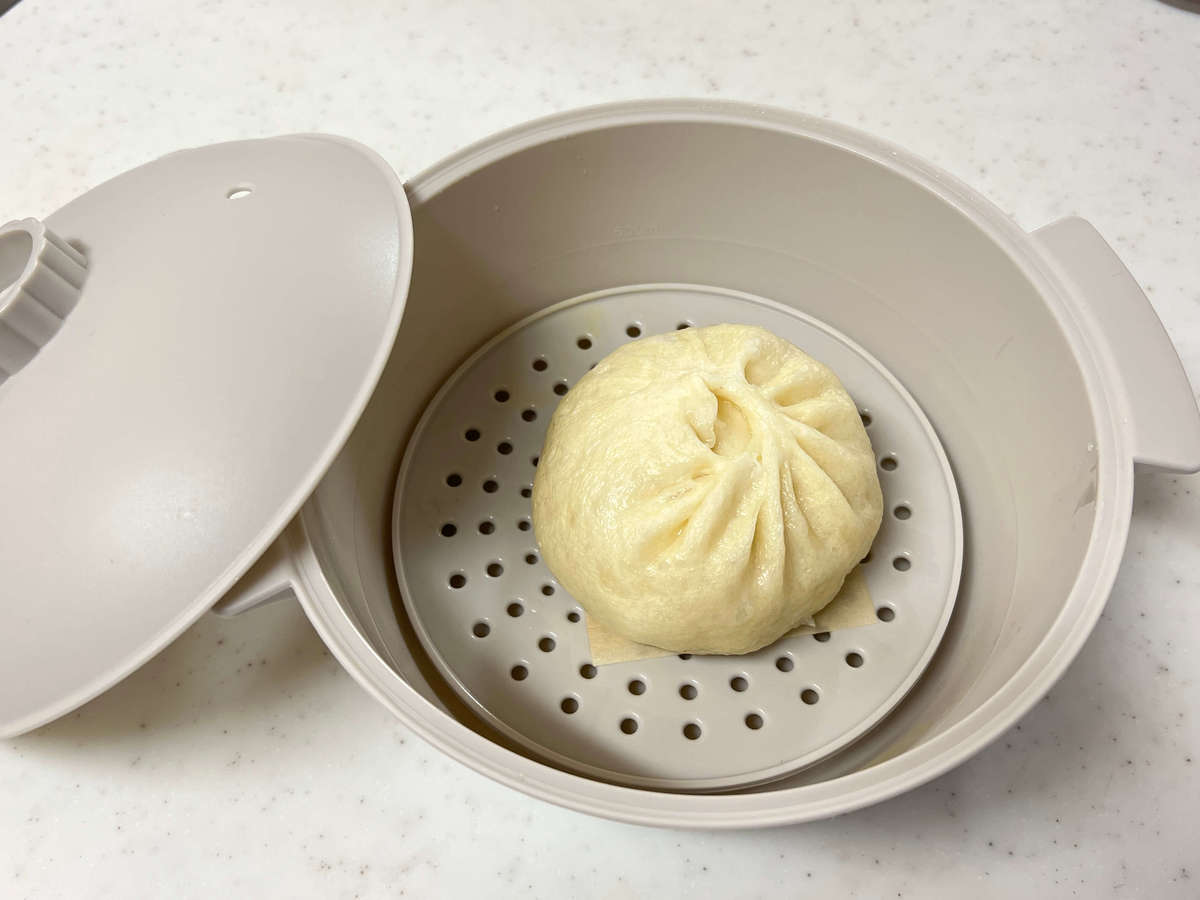 ビストロヌードルに付属で付いているすのこを本体にセットします。この上に、表面を湿らせた肉まんを置いて蓋をし、表示通りに温めます。これだけでふっくら美味しい肉まんの完成です。