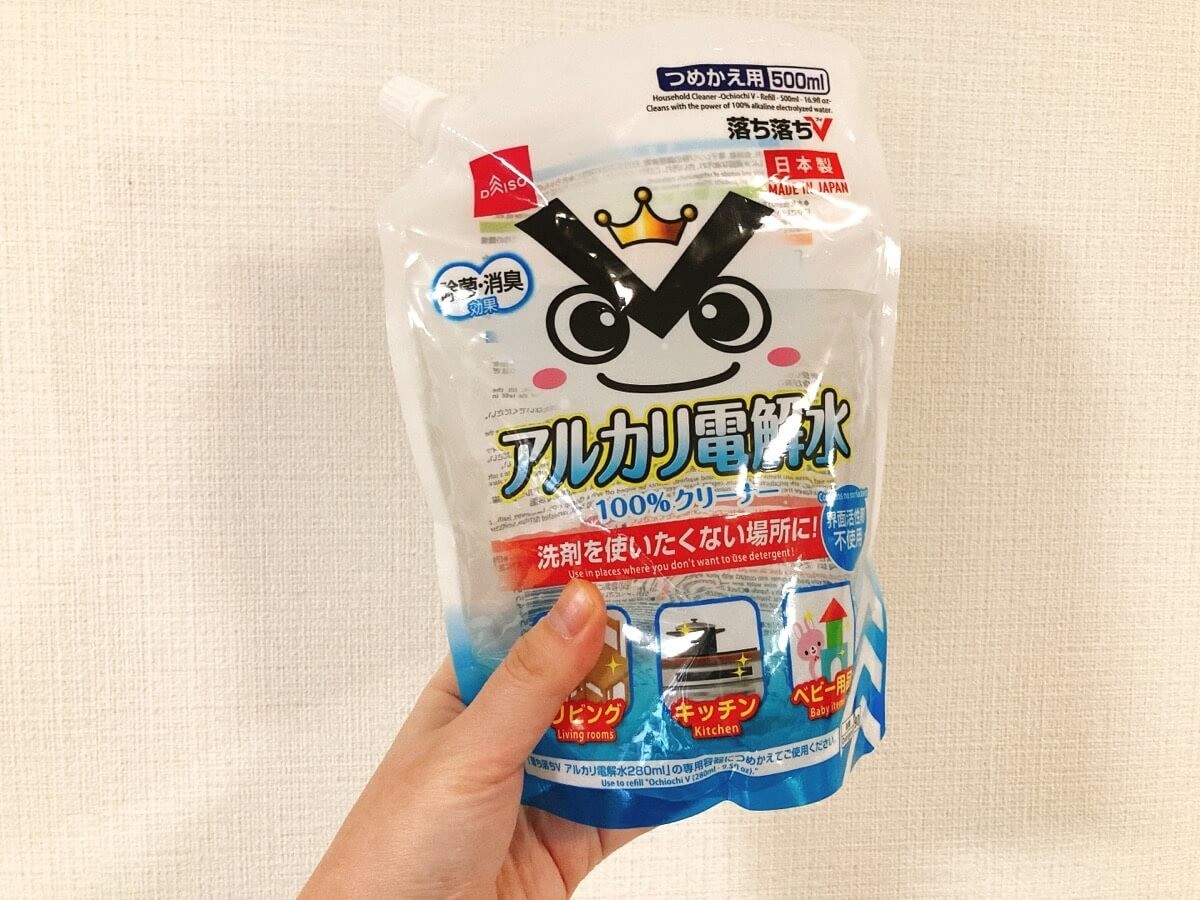 ドラッグストアでもアルカリ電解水は取り扱っていますが、価格はダイソーの「落ち落ちV」の方が断然安いです。