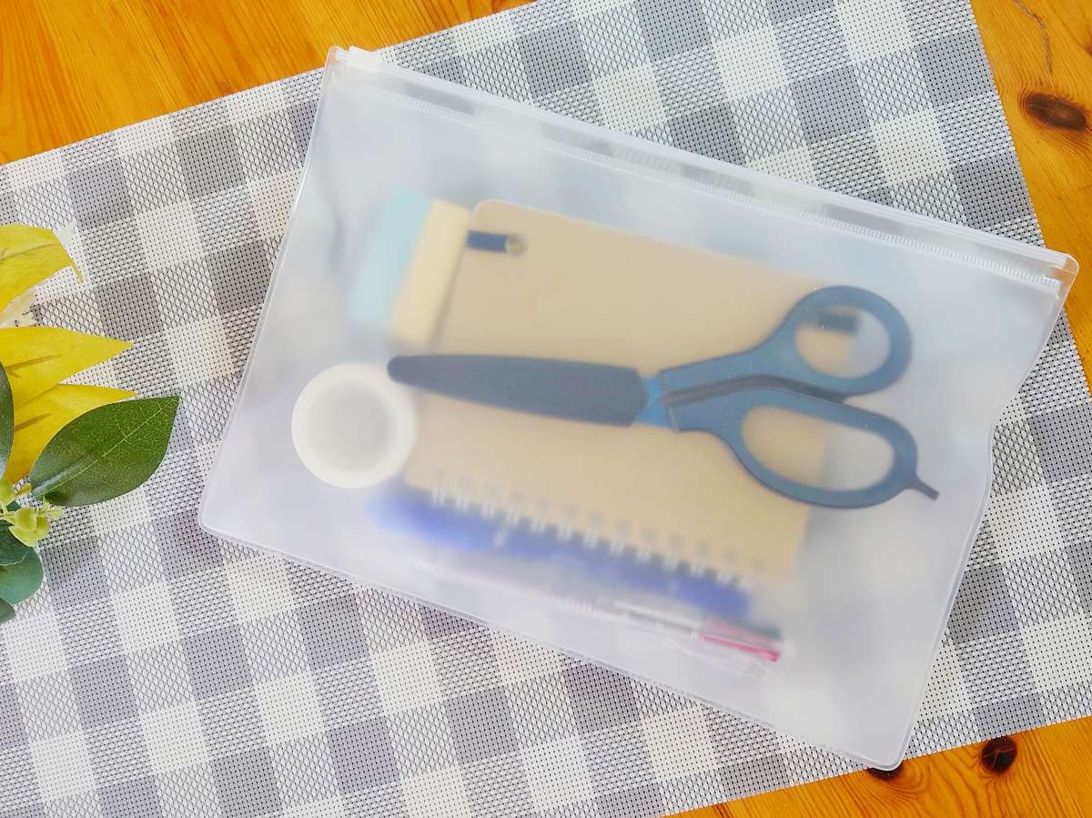 A5サイズだと、メモ帳やハサミなどの文房具もまとめられます。