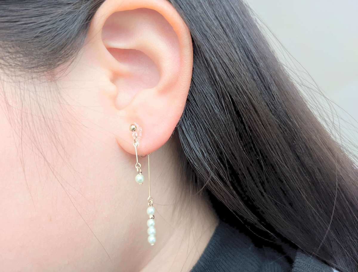 耳が痛くなりにくい樹脂製で、サイズ調整不要で気軽につけられるのが嬉しい!