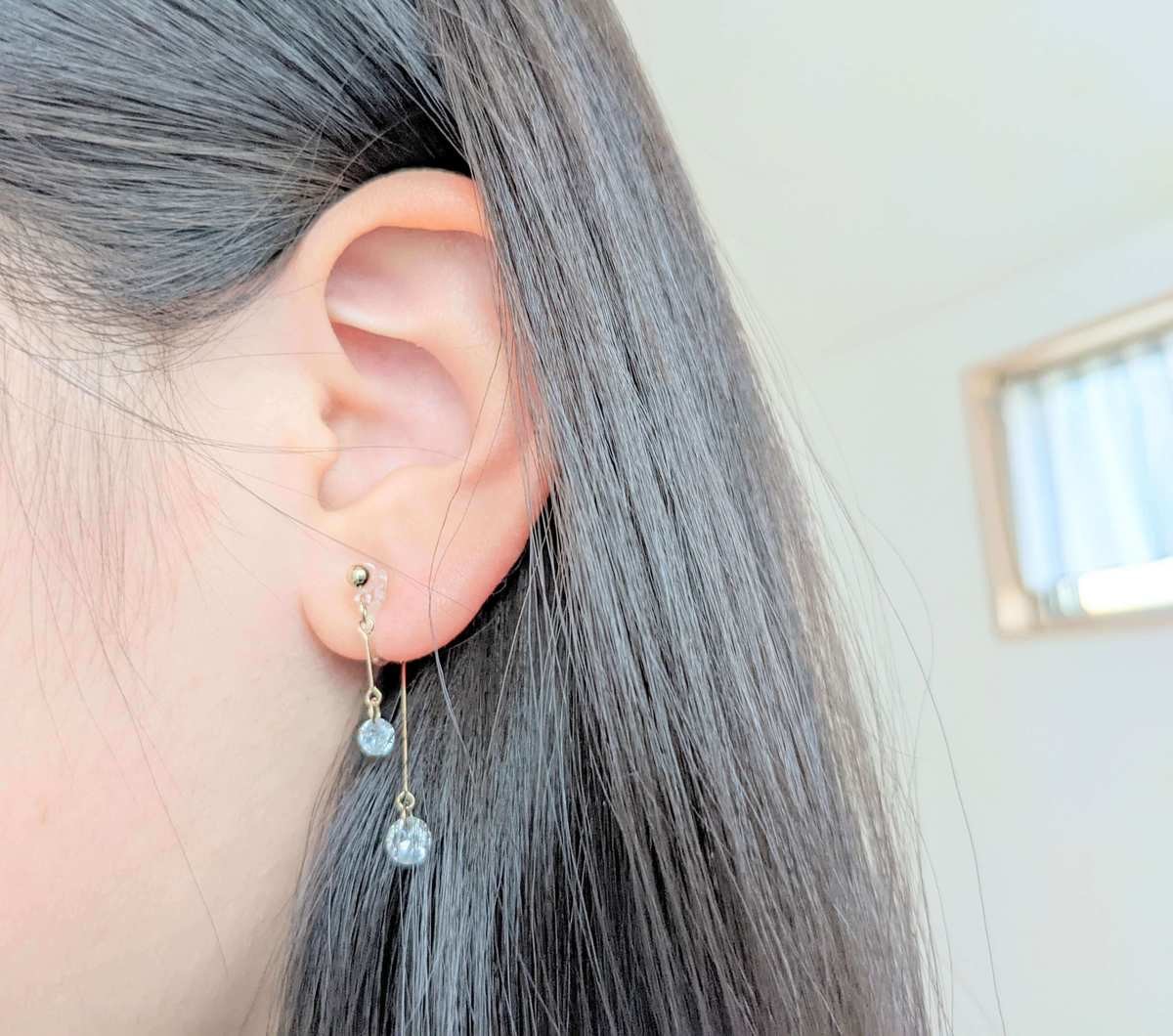 私のおすすめイヤリングは、こちらです♪ 前後にデザインされているのが特徴で、顔まわりをパッと明るく華やかにしてくれる注目のイヤリングなんです。