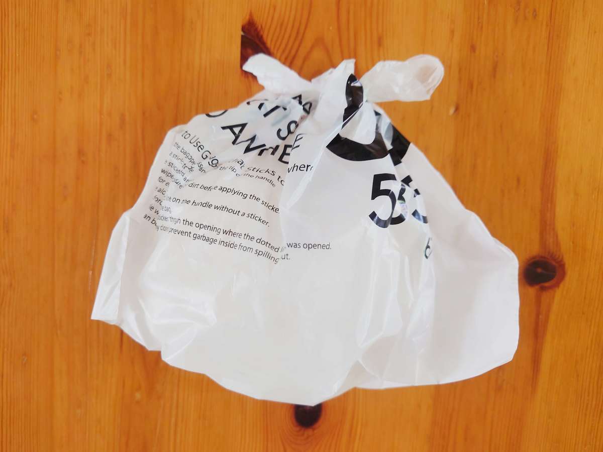 私は、持ち手をさらにキュッと結んでから捨てます。より密閉され、中身がこぼれず安心です。