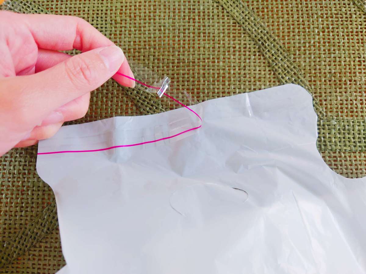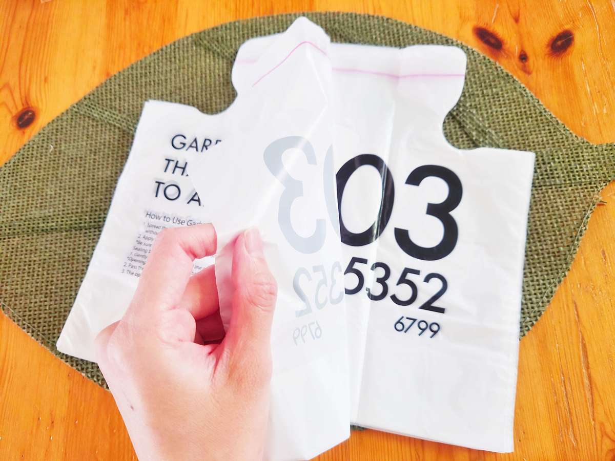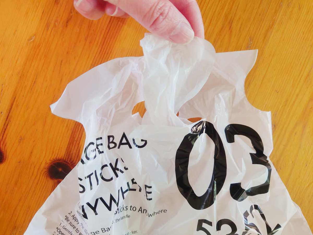 口止め加工がされていて、片付けしやすいのもポイントです。簡単に口を閉じられるので、袋がいっぱいになったらすぐに捨てられます。これは便利ですね!