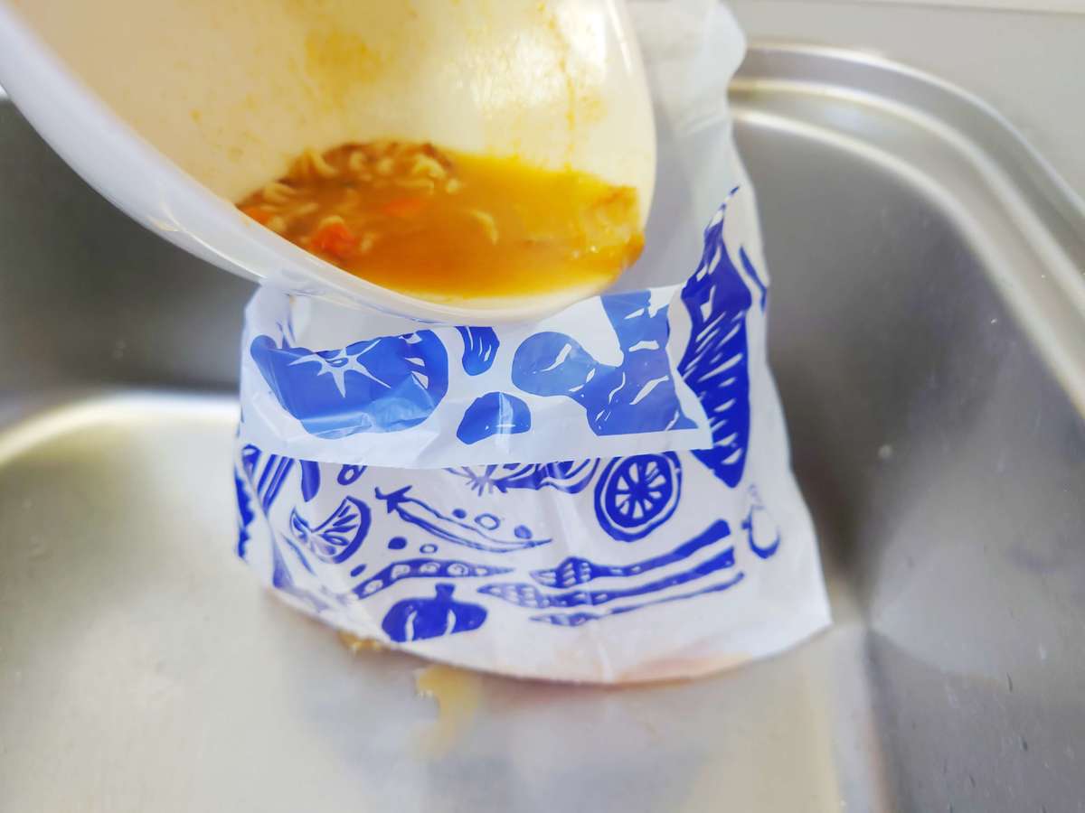シンクでゴミ用にビニール袋を使う場合、水が溜まってたぷたぷになってしまい、使いにくいことがありますよね。