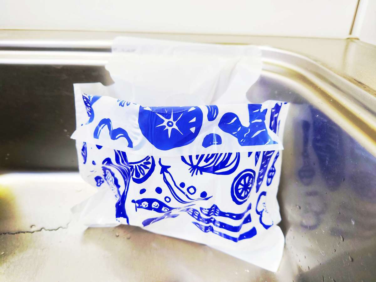 キッチンシンクの中で使いたい人には「どこでもペタッと穴あきゴミ袋」がオススメです。
