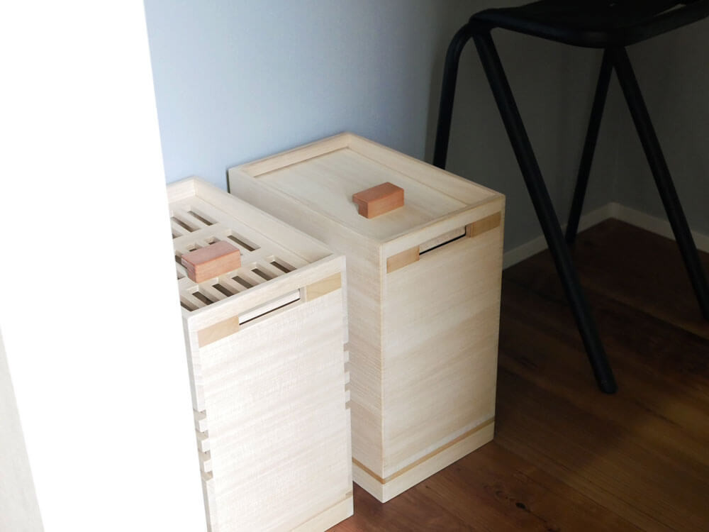 桐の特性を活かし、さらに桐箱伝統の技術を組み合わせた米びつ。高級感のある質感とルックスでディスプレイしたくなるほど。