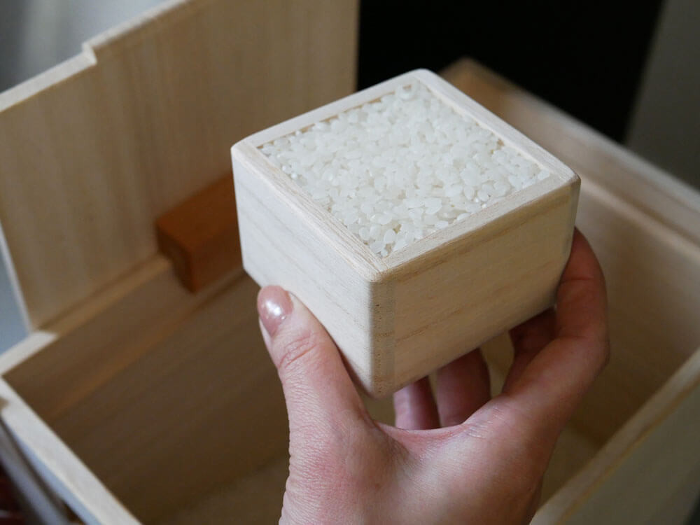 お米を1合、2合と量るのに必要な枡(マス)も同じ桐製。