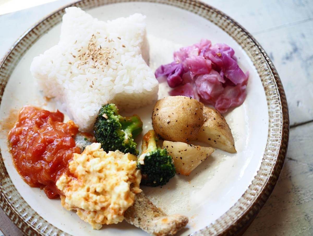 ごはんをシリコーン型に詰めてひっくり返すだけで、おしゃれなカフェ風プレートを簡単に作ることができますよ。