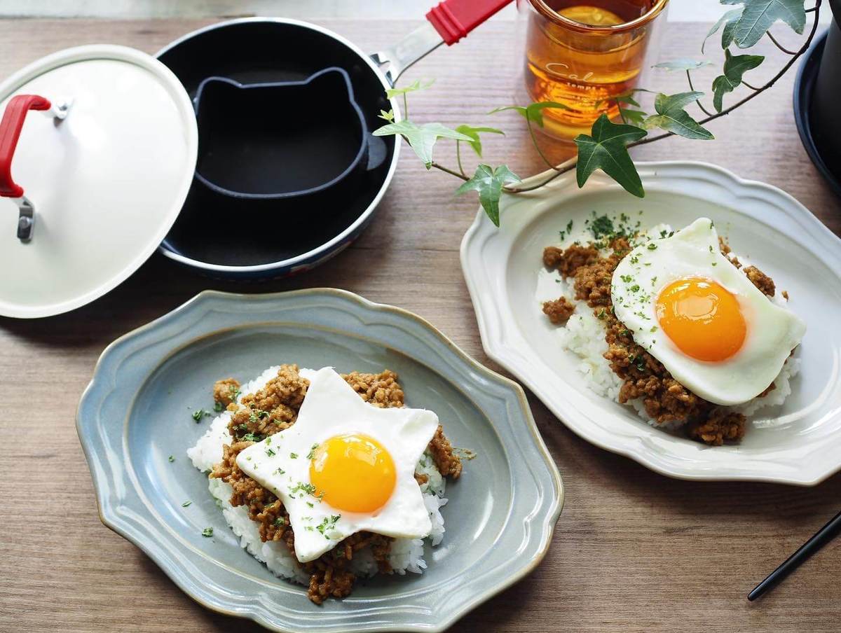まず最初は目玉焼きから。フライパンにのせて直火調理OKなので、薄く油を引いてから卵を焼くとかわいい目玉焼きを作ることができますよ。
